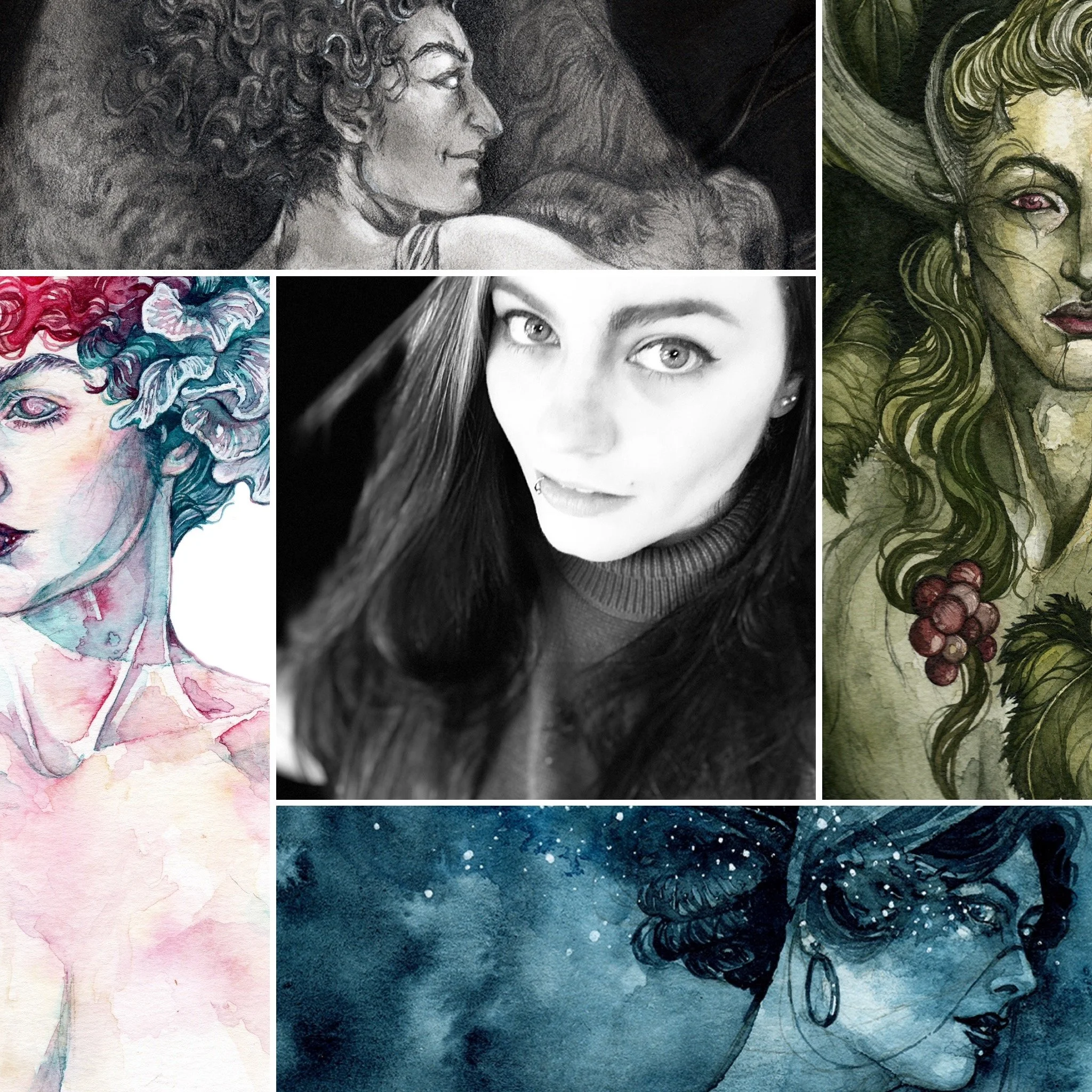 In my bodies of work you’ll find subjects from fantasy and folklore to studies of the natural world and everything in between. I’m often inspired by musical lyrics, textures, emotions, colors and more. I never know where the next inspiration will come from!